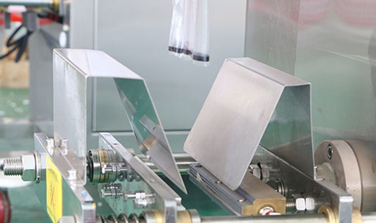 This liquid packing machine is precisely controlled by PLC, it can automatically complete all the production process like bag making, counting, filling, sealing and coding batch number, adding easy to open notch, cutting separated or connected bags. It uses 304SS nozzles and valves and reduces filling error, more suitable for filling different kinds of liquid, such as milk, sauce, soymilk, vinegar, etc. All parts that get contacted with liquid is made of the 304SS, additionally, this machine can add color ribbon coding, dust cover and sterilizing lamp.